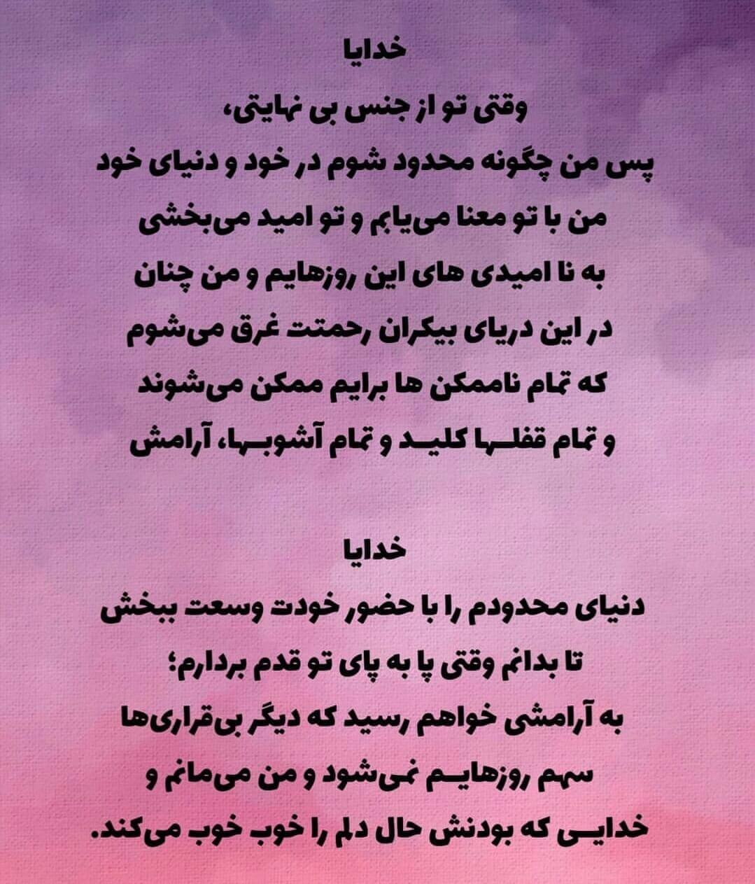ﺧﺪﺍﻭﻧﺪ ﺍﯾﻦ ﺍﻣﮑﺎﻥ ﺭﺍ ﺑﻪ ﻣﺎ ﺩﺍﺩﻩ