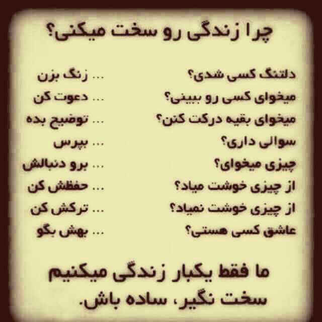 بزار خیالتو راحت کنم! چه پولدار باشی چه بی پول، چه عاشق باشی چه تنها، چه در خوبه خوبترین حالتها چه در بدِ بدترین حالتها، زندگی هم تلخه هم شیرین