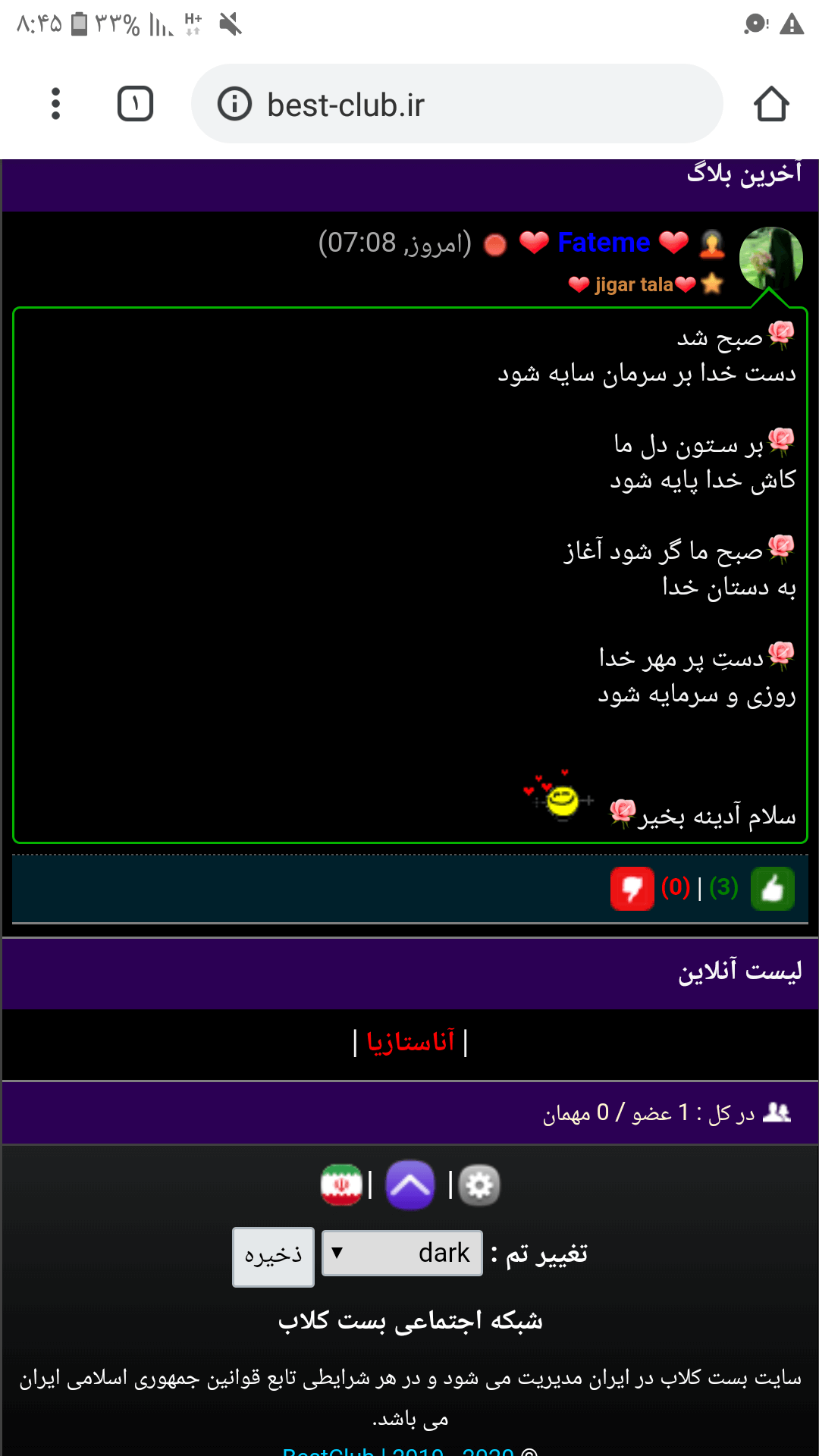 تلویزیون رو خاموش کرد پتو رو کشید روی زنش بعد در گوشش گفت : پاشو شام رو بیار آخرین آنلاینت یک دقیقه پیش بوده