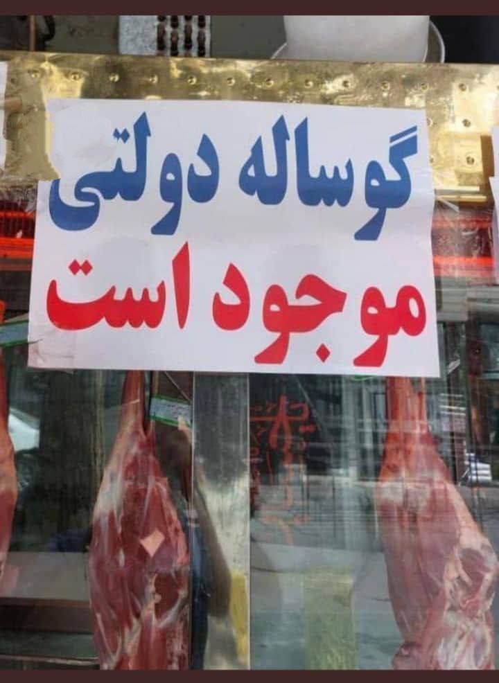 #ااین حکایت واقعی است امروز از خیابان میگذشتم که روی شیشه مغازه قصابی نوشته بود ⏪ گوساله دولتی موجود است