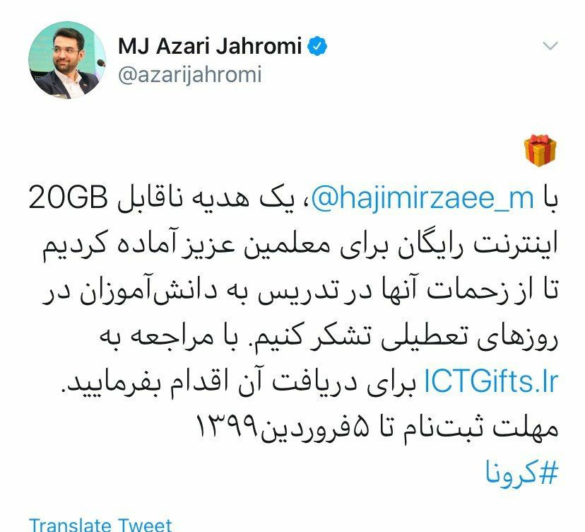 سی سی راسی به معلما ۲۰ گیگ نت میدن