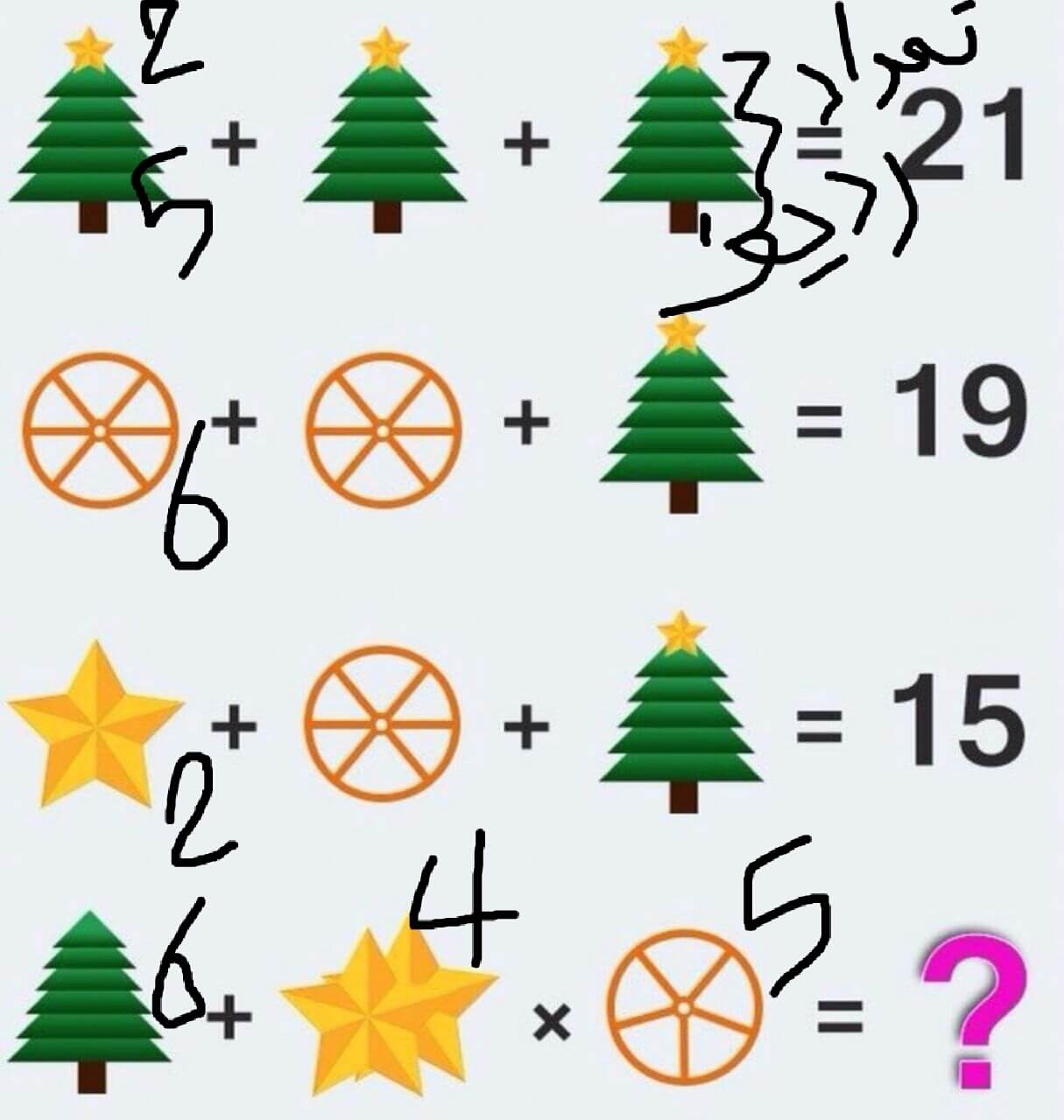 تو ردیف اخر کاج ستاره نداره ولی یه ردیف بهش اضافه شده ینی قبلا بوده هفت اما الان ازش دوتا کم شده یکی زیاد شده پس مقدار کاج آخری میشهجواب اشتباهه تو مبحث ریاضی اول باید ضرب و تقسیم انجام بشه بعد جمع و منها پس جواب میشه ۳۶